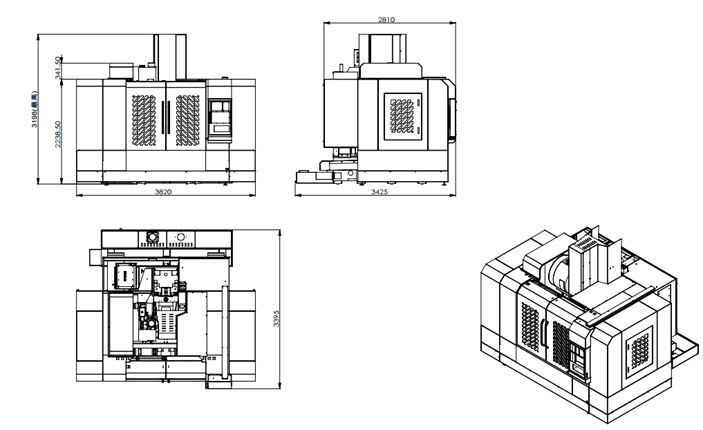 | 外型尺寸(長*寬*高) | 3820*3425*3200 左右 |