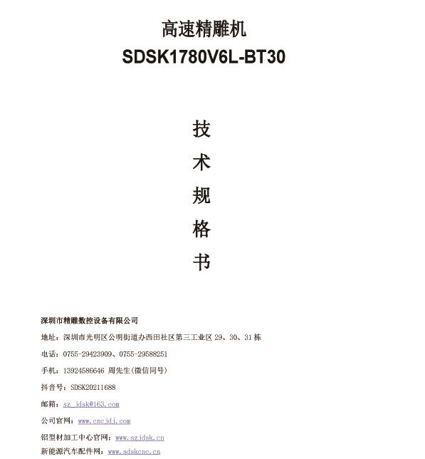 SDSK1780V6L-BT30 機型是專門為客戶量身定做的高速精雕機
