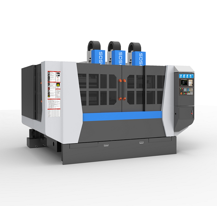 SDSK 3Z機型是專門為門為客戶量身定做的帶刀庫3軸鉆攻機;配有直排刀庫;前后左右都有推拉門;運動方式為Y軸工作臺前后移動,X軸主軸左右移動,3Z軸主軸可以同時上下移動,可以同時鉆孔攻牙,也可以單獨上下移動,3個主軸裝夾相同的刀具,同時加工,可大大提高生產效率;機身采用頂級的濟南花崗巖(大理石)結構、永遠不變形;臺灣全套新代系統/伺服電機/主軸驅動;5軸采用進口臺灣上銀/PMI/TBI精密級直線導軌,精密級滾珠絲桿,精密級聯軸器,配電柜恒溫系統,先進的主軸制冷系統,自動潤滑系統,冷卻液循環噴水和噴霧系統,空氣過濾裝置,保證了更高的加工精度、速度與穩定性; 特別適用于各類銅、鋁、壓克力、塑料等零件的精密3D雕刻、雕銑、精雕、切割、鉆孔、攻牙等加工。