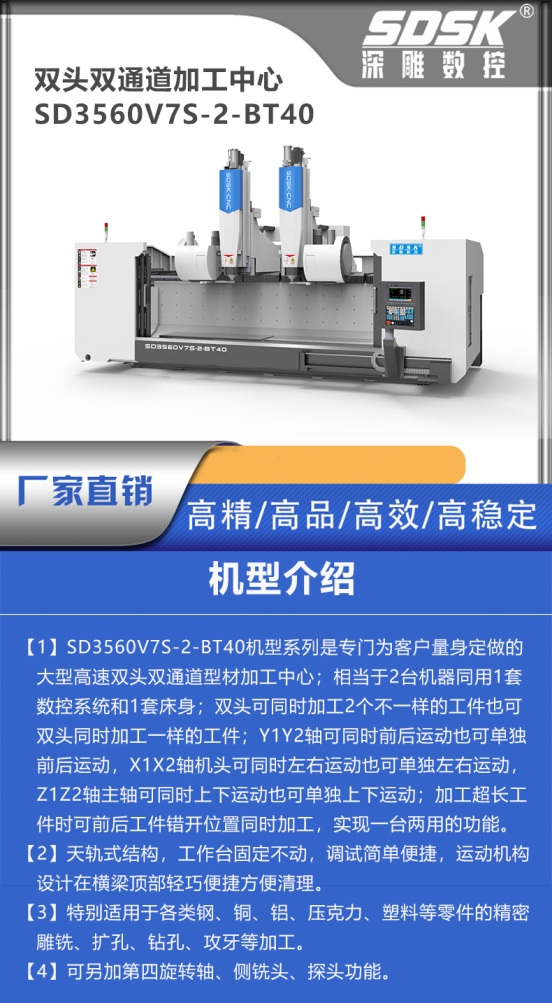 天軌式雙頭雙通道加工中心詳細參數